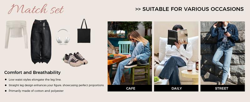 - Design: Wide leg jean could flatter a variety of leg types, providing ample room for movement and breathability. Barrel jeans are a versatile addition to any wardrobe. Loose fit denim pants effortlessly enhance your look with their sophisticated allure